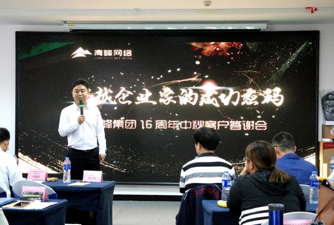 洛陽市青峰網(wǎng)絡科技有限公司商務拓展部運營總監(jiān)牛奔先生為大家?guī)怼蹲吭狡髽I(yè)家的成功密碼》主題演講!為大家講解了在互聯(lián)網(wǎng)時代, 卓越的企業(yè)如何與時俱進,抓住全網(wǎng)營銷的機遇,怎么用互聯(lián)網(wǎng)來贏得客戶。